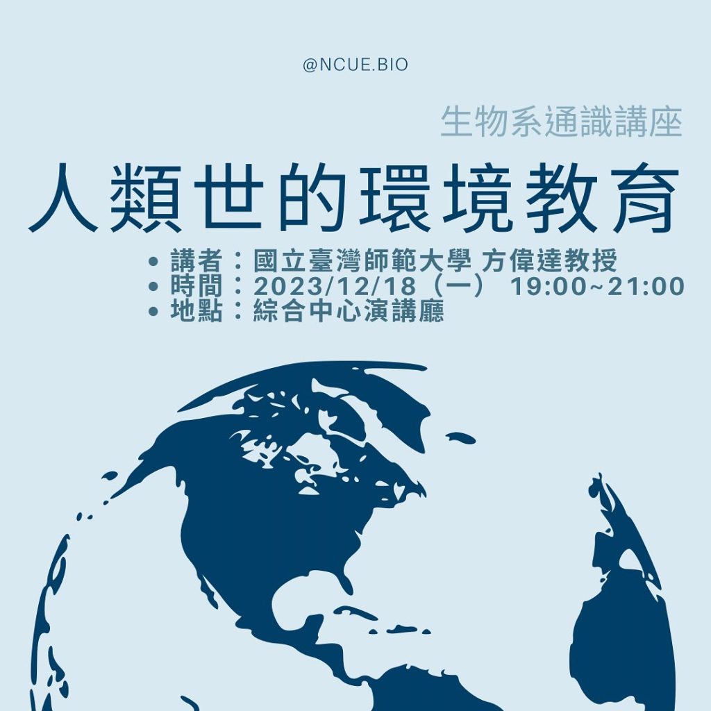 【專題演講】人類世的環境教育–國立彰化師範大學生物學系系學會主辦2023/12/18